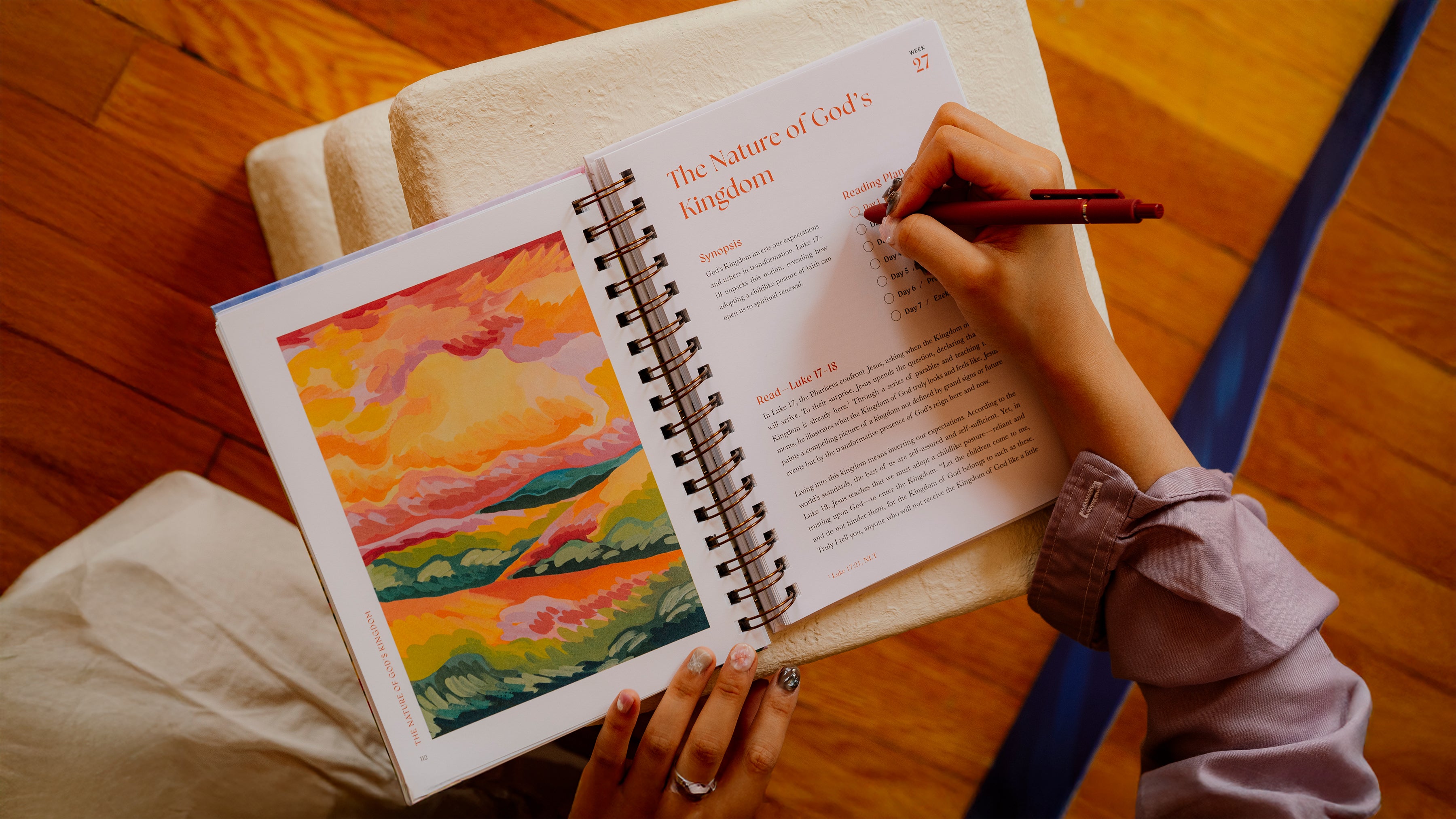 Daily suggested readings and prompts to encourage deeper reflection, helping readers explore the story of scripture with renewed perspective and intention.